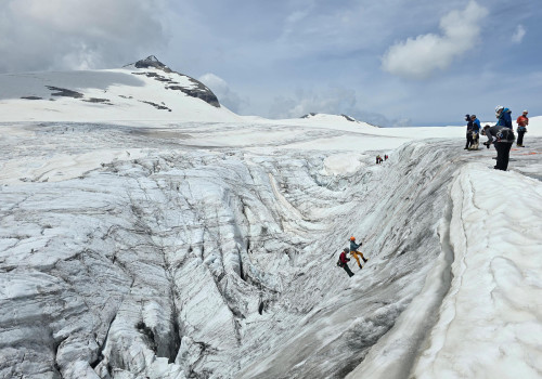 • Freitag & Samstag: Kursprogramm auf dem Gletscher - Seilschaft am Gletscher, Gehen mit Steigeisen, Führungstechnik, Fixpunkte in Schnee und Eis, Spaltenbergung, Selbstrettung mit Münchhausentechnik, theoretische Inputs, mit möglicher Tour