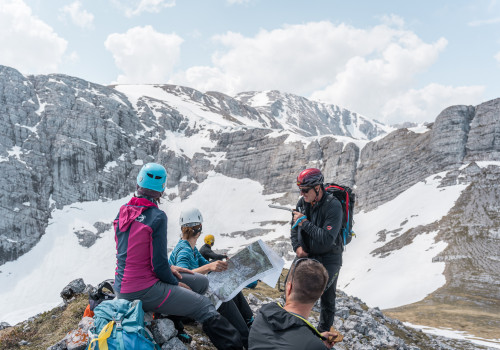 Gehtechniken im alpinen, weglosen Gelände, auf Schneefeldern und auf drahtseilgesicherten Wegen
